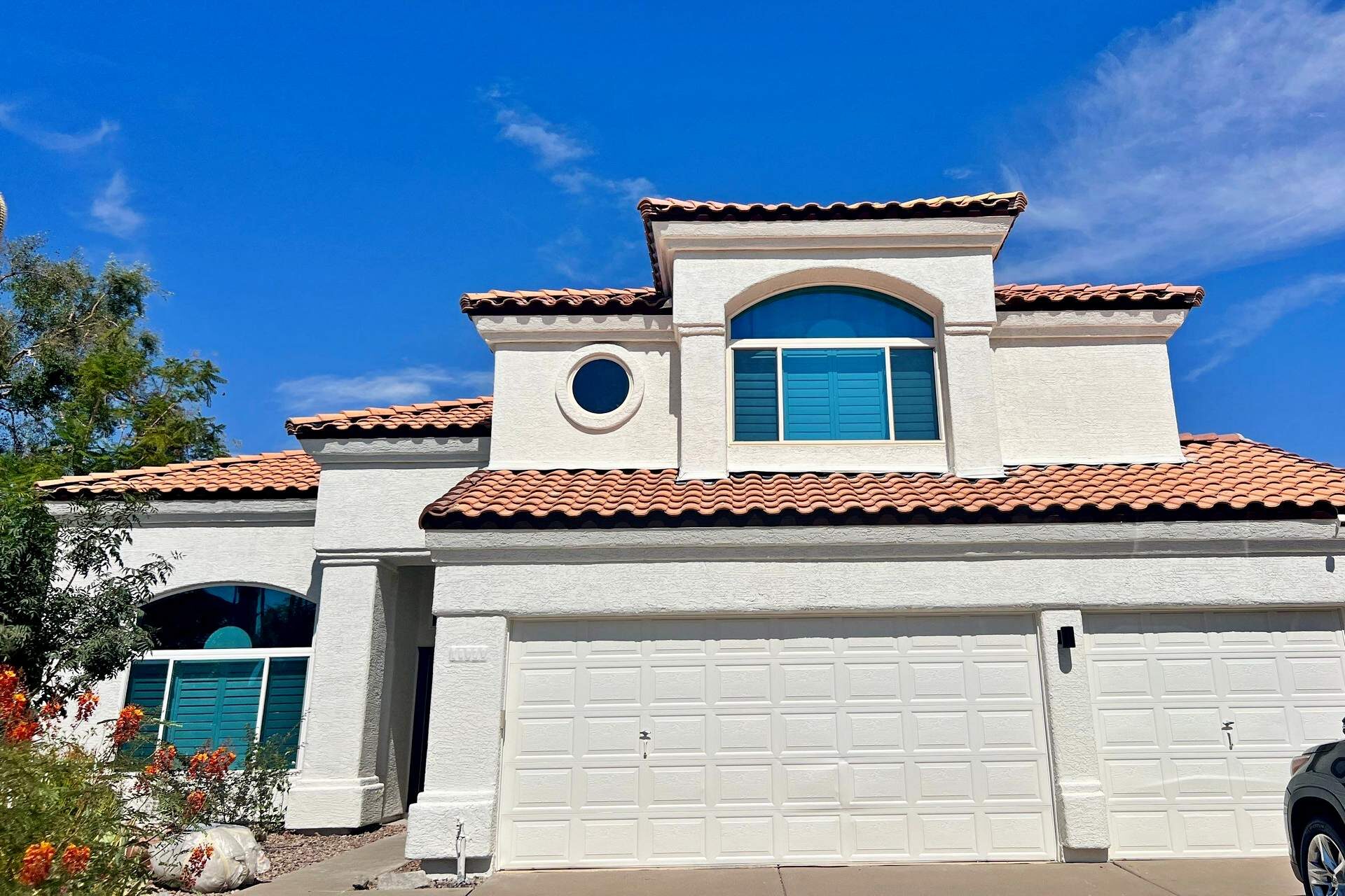 Eleven Coats Painting undertook an exterior painting venture in Phoenix, AZ, covering both the house's facade and the enclosing wall fence.