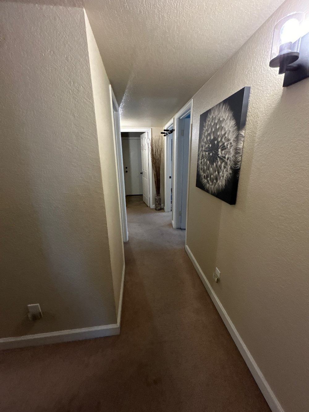 In addition to the kitchen, the project included painting several rooms and hallways to meet the homeowner’s specific aesthetic desires. The walls were painted with a tasteful combination of off-white and light blue, creating a tranquil and welcoming environment throughout the home. The ceilings received a crisp white finish, which helped to brighten the spaces and give a feeling of increased height and openness. This color scheme was carefully chosen to reflect natural light more effectively, creating a more vibrant and airy atmosphere.